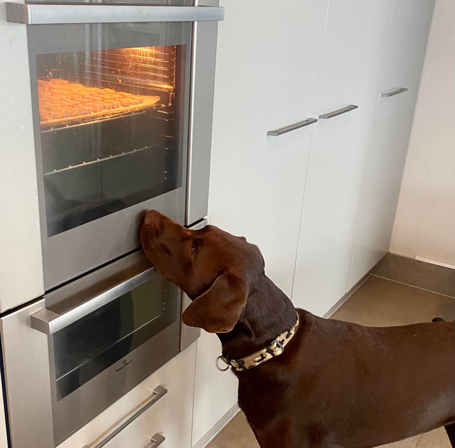 Now, with Gunner and Poppy by my side (and usually underfoot), I spend my baking days crafting purpose driven treats, made by hand, backed by nutrition, and inspired by the animals who need them most.