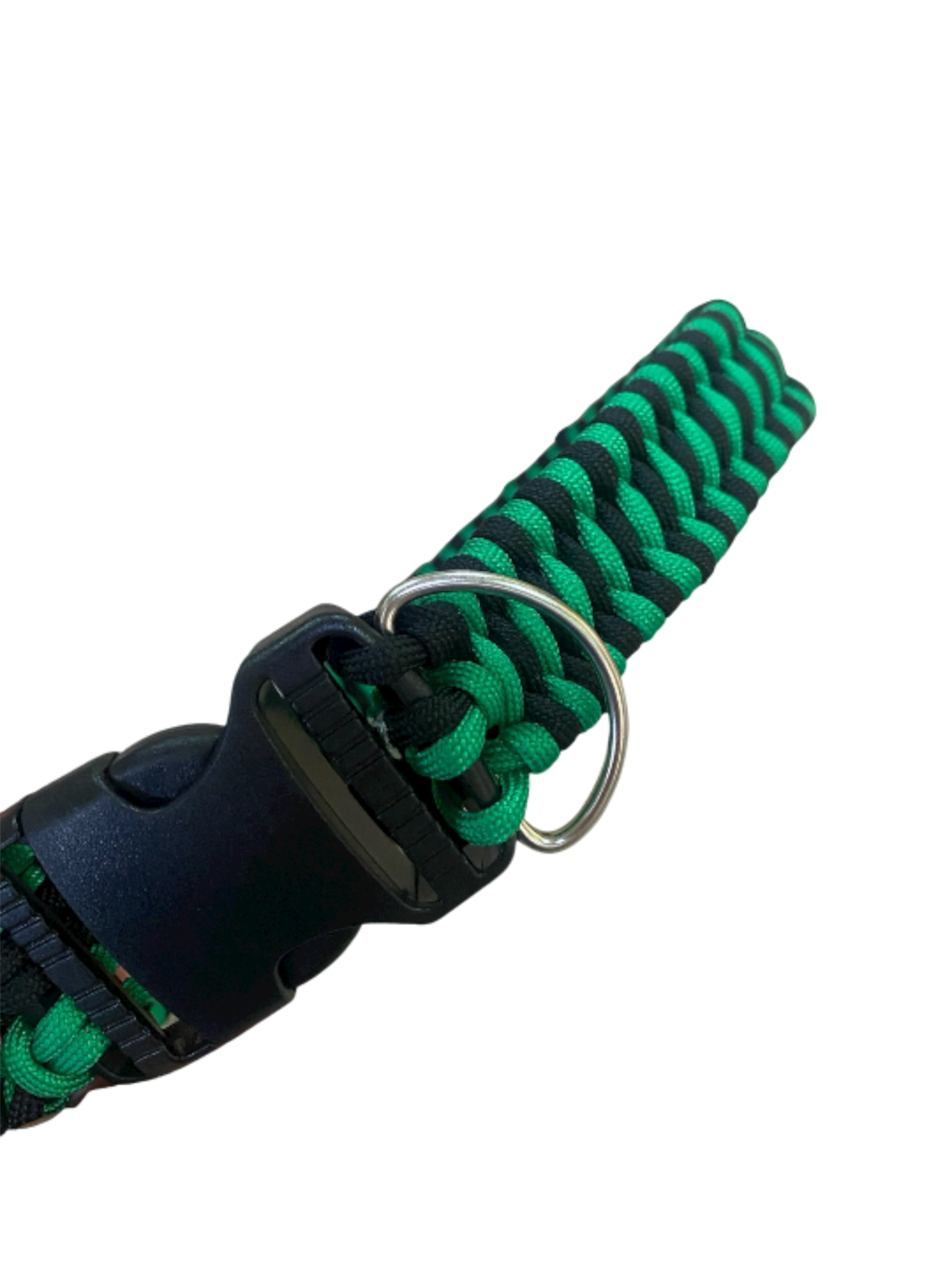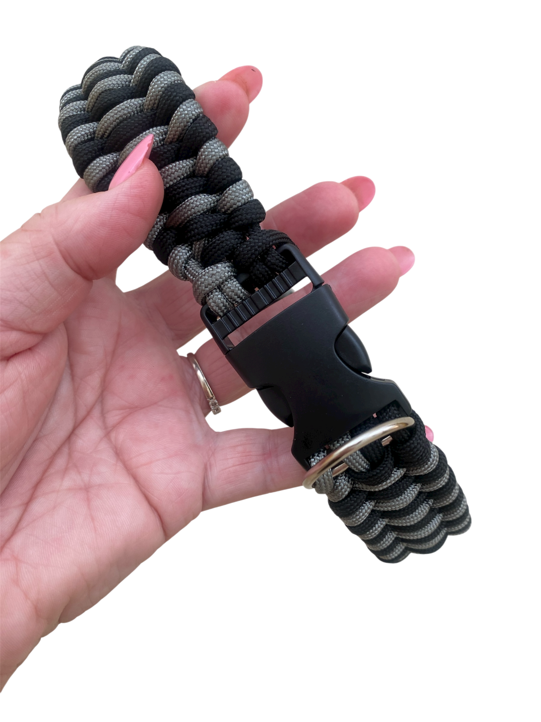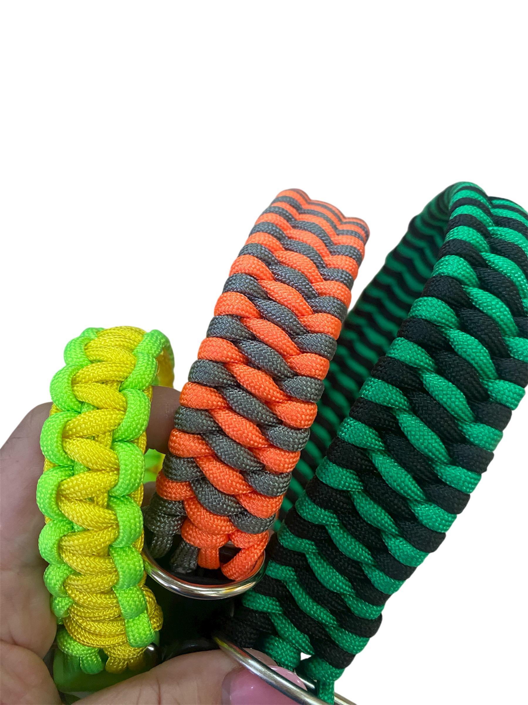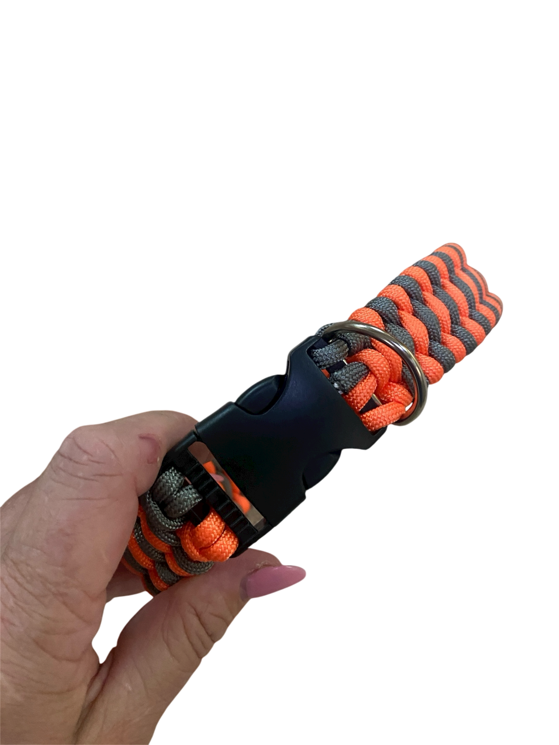 Our Paracord Dog Collars are designed for strength, comfort, and everyday adventure. Each collar is handwoven using 550 paracord - the same tough material trusted in outdoor survival gear, making it lightweight yet incredibly strong.